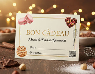 J'ai tout prévu ! Tu peux offrir une Carte Cadeau valable 6 mois sur tous mes ateliers de 3 heures. C’est l'occasion idéale pour permettre à tes proches de venir pâtisser à mes côtés à Bagnols-sur-Cèze, quand ils le souhaitent. Tu recevras le bon cadeau directement dans ta boîte mail pour l'offrir sans attendre !
